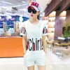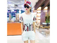 2016夏季新款韩版修身休闲套装字母印花短袖运动服一件代发
