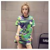 2016夏装新款韩版 宽松显瘦圆领短袖中长款迷彩T恤衫 女