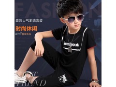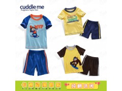 cuddle me童装批发 小猴拼接短袖双面套装 圆领精梳纯棉男童套装