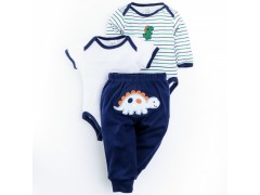 外贸童装 婴儿衫套装 恐龙 哈衣三件套 欧美时尚品牌新款套装