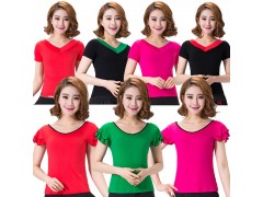 广场舞上衣 广场舞服装上衣短袖新款 拉丁舞台舞蹈服上衣短袖女