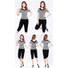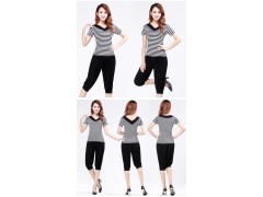 广场舞服装莫代尔条纹新款舞蹈瑜伽短袖V领上衣 灯笼裤 一件代发