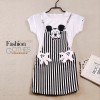 2016夏季新款韩版全棉短袖背带裙条纹米奇假两件女童中大童背带裙