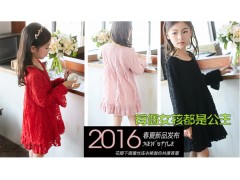 春款童装女童裙子 韩版中大童公主裙女孩镂空蕾丝长袖儿童连衣裙
