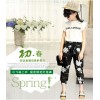 2016新款女童中大童夏装欧美小飞袖绣花灯笼裤大脚裤阔脚裤套装