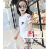新款夏装女童中大童韩版潮流碎花时尚套装圆领短袖七分裤全棉套装