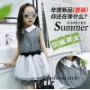 16新款夏装女童中大童韩版潮范学院风修身无袖衬衫领五分短裤套装