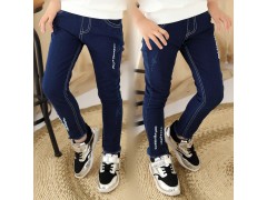 童裤2016春秋季新款儿童毛脚口童裤 韩版牛仔后袋破洞女童牛仔裤