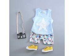 儿童两件套2016夏新款男童个性五角星印花背心+短裤套装 一件代发