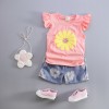 童装夏款女童韩版中小儿童无袖花朵T恤套装短裤两件套一件代发