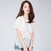 女都2016夏季圆领短袖纯色镂空上衣 新款百搭花瓣宽松女士上衣