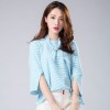 女都2016夏季韩版细横条纹开叉T恤配领结 新款宽松开叉清凉T恤