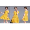欧洲站2016夏季新款女装黄色短袖蕾丝公主裙蓬蓬连衣裙 一件代发