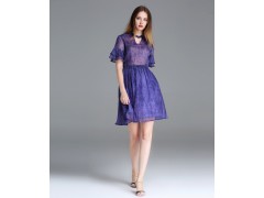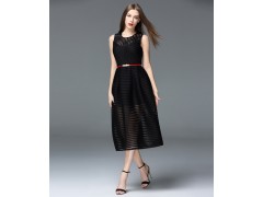 欧洲站女装2016夏季新款纯色收腰A字裙 飘带蕾丝连衣裙一件代发