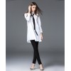 欧洲站2016秋季新款系带领结蝴蝶结衬衣珠片刺绣长款纯棉白衬衫女