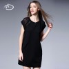 2016夏季新款欧美短袖镂空连衣裙 简直高端黑色连衣裙女裙子