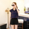 时尚潮流休闲大方衬衣领无袖单排扣格子两件套装2016夏季女装新款