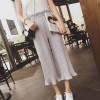 2016韩版夏季松紧高腰百褶七分裤雪纺阔腿裤女士休闲喇叭裙裤