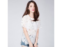 2016韩版新款宽松简约休闲竖条纹百搭上衣时尚短袖棉麻衬衫女夏