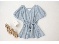 2016韩版新款百搭纯色肌理雪纺上衣圆领纯色中袖雪纺衫女夏
