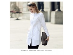 2016春装新款欧美纯色纯棉A版宽松中长款口袋衬衫 打底杉上衣女
