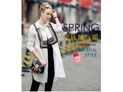 2016春装新款欧美宽松休闲长款绣花衬衫女纯棉纯色长袖开衫潮流