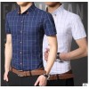新款夏装男士短袖衬衫纯棉修身格子男衬衣半袖上衣 厂家直销批发