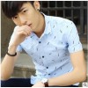 批发夏季潮流男装韩版修身印花男式短袖衬衫免烫男士格子衬衣正装