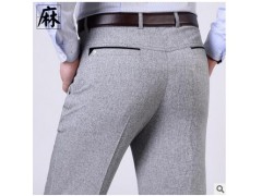 夏季薄款男式休闲裤商务中年亚麻男裤长宽松白色棉麻抗皱免烫新款