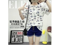 实拍新款女上衣印花韩版修身百搭显瘦棉体恤衫女装短袖t恤女