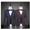 大码男式西装三件套装 韩版休闲西服格子修身 商务结婚礼服潮男装