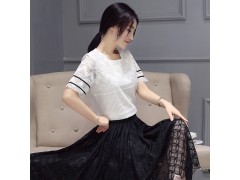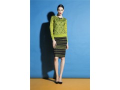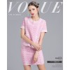 欧美时尚大牌女装 初秋新款提花圆领短袖针织上衣 短裙伞裙套装