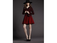 2016初秋新款女装针织衫 气质修身V领百褶裙两件套套装连衣裙