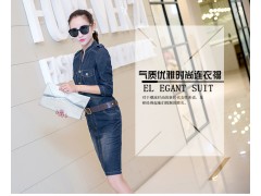 夏季新款一字领牛仔连衣裙 通勤淑女波点文艺小清新薄牛仔裙