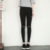春秋破洞打底裤外穿弹力紧身高腰黑色九分女裤薄款大码小脚长裤子