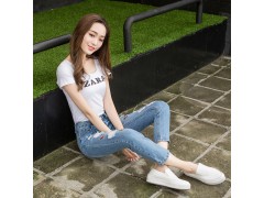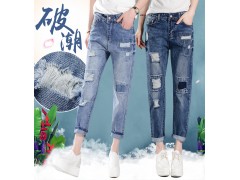 2016春夏水洗破洞刺绣宽松牛仔裤抓纹九分裤女潮批发供应一件代发