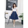 2016夏季女装韩版时尚中长裙显瘦带兜牛仔裙半身裙
