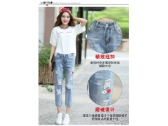 2016夏季女装新款bf风破洞牛仔裤女宽松韩版显瘦小脚哈伦裤子