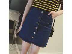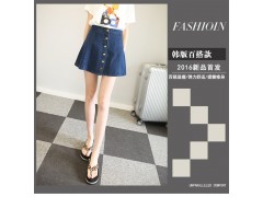 2016夏季韩版高腰半身裙百褶牛仔裙A字裙夏