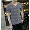 爆款高档男式短袖T恤男士夏季韩版棉麻弹力网眼多色大码V领体恤潮