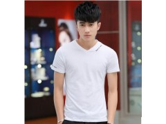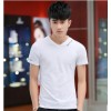 厂家直销新款男装夏季男式短袖V领T恤纯色修身运动白上衣批发