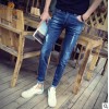 新款青少年破洞牛仔裤男修身小脚男式牛仔裤夏季薄款男士长裤弹力