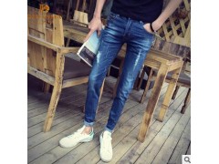 韩版2016男士牛仔裤小脚直筒潮男青少年修身薄款酷你裤百搭