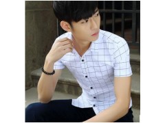 夏季男式短袖衬衫男士衬衣免烫抗皱韩版修身时尚青年商务大码男装