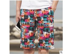 短裤男夏天休闲裤男装五分裤韩版5分中裤印花大裤衩修身沙滩裤子
