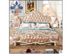 欧式1.8M实木双人床 白色高档真皮双人软床 精致雕刻奢华婚床